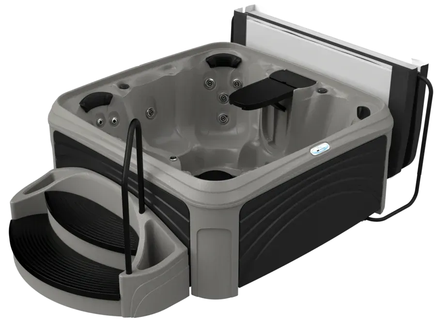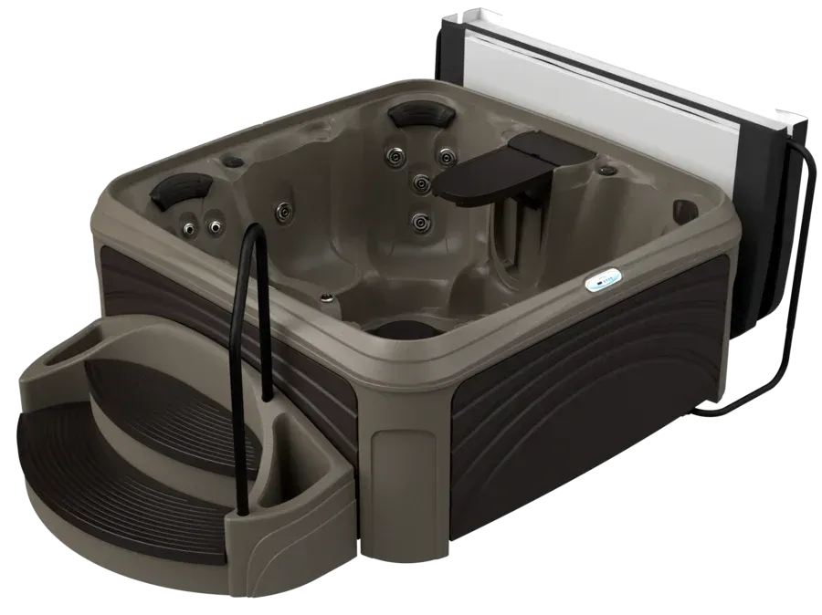 All Suite spas includes the extra wide integrated Suite Steps with slip resistant step treads, sturdy handrail and two side planters plus bonus storage area inside the step. The suite also includes a quality Cover Lifter to make lifting, storing and replacing your cover easy and convenient between every use. This 5 person hot tub has 25 adjustable jets that target shoulders, back muscles and feet for a massaging hydrotherapy experience. Enjoy the comfort pillow headrests to enhance your relaxation. For entertaining or unwinding, the Fountain with Back-lit LED Light and 8 exterior cabinet lights allow you to set the perfect mood.