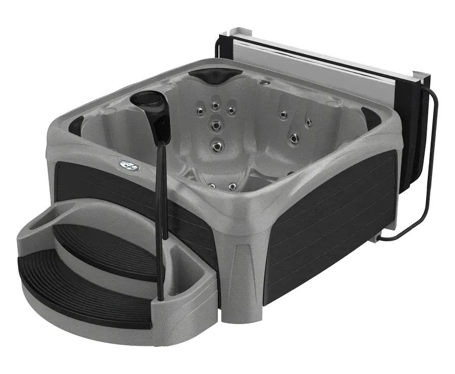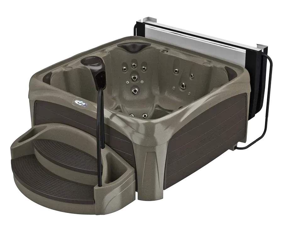 Recline in the deep contours of the 730S Suite and experience all that the Crossover has to offer. This 6-7 person all-seat hot tub has 30 stainless steel jets that target shoulders, back muscles and feet for a massaging hydrotherapy experience. Enjoy the Everlast Trueform comfort pillow headrests to enhance your relaxation. For entertaining or unwinding, the Fountain with Back-lit LED Light and 8 exterior cabinet lights allow you to set the perfect mood. All Suite spas includes the extra wide integrated Suite Steps with slip resistant step treads, sturdy handrail and two side planters plus bonus storage area inside the step.